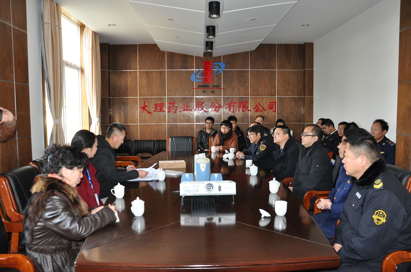 2016年2月5日,在大理市李欣副市長、繆錦輝副市長(掛職)的帶領下,由市場監督管理局及相關部門組成的安全生產檢查組一行蒞臨我公司進行安全生產檢查。首先,聽取了公司安委會副主任、工程設備總監孟坤對公司安全生產情況的彙報;隨後,在公司副總經理袁瑋、行政總監王永珠的陪同下,對公司動力車間、藥品成品庫、藥品原料庫進行了實地查看。最後,通過檢查,李欣副市長對公司的安全生產情況給予了充分地肯定,同時,也提出了寶貴的建議。
